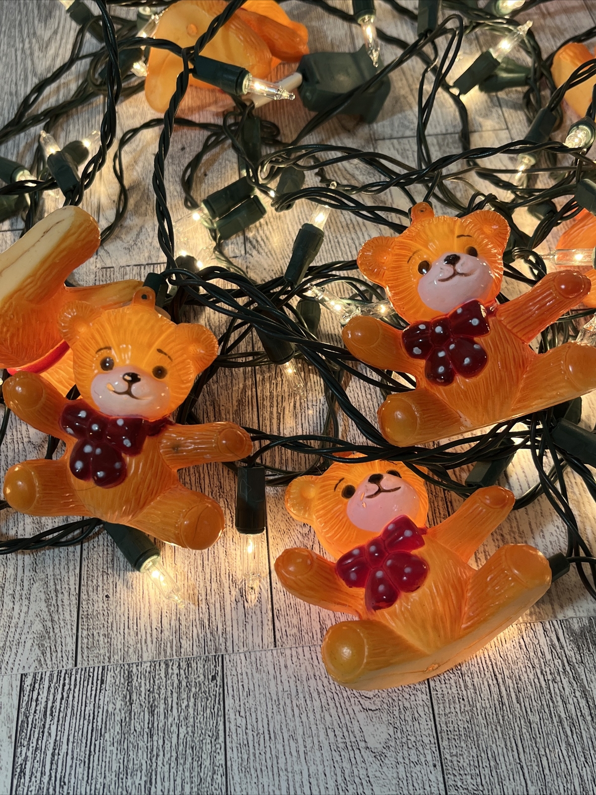 Vintage 1996 Blow Mold Teddy Bears 20 Feet Of String Lights Polka Dot Bow Ties Ebay